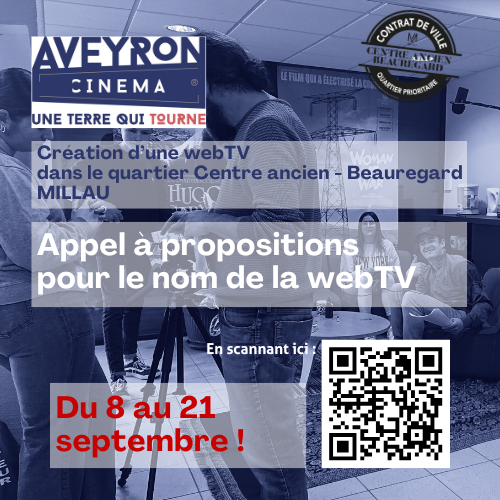 Par ailleurs, si vous aussi, vous souhaitez participer aux tournages de la webTV, découvrir les métiers de l’image et du son, n’hésitez pas à prendre contact avec Céline d’Aveyron Cinéma (celine@aveyroncinema.fr). L’association accueillera 6 personnes par mois pour accompagner et aider l’équipe de production, à partir d’octobre. C’est l’occasion de passer derrière la caméra ou de s’exercer au journalisme. Une expérience très riche et professionnalisante  ! Les critères principaux sont d’habiter dans le périmètre géographique du quartier prioritaire de la politique de la ville et d’être motivés.