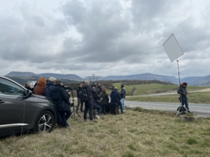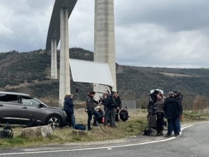 Images du tournage en mars 2025 à l’occasion d’une scène sous le viaduc avec Jean-Pierre Darroussin et Elodie Frégé :