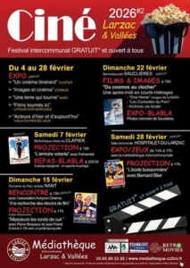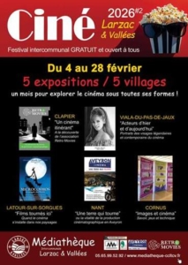 Depuis 2025, Aveyron Cinéma est partenaire du Festival Ciné Larzac & Vallée, autour d’une exposition et d’une rencontre sur le thème d ela recherche des décors. L’édition 2026 a lieu du 4 au 28 février 2026.